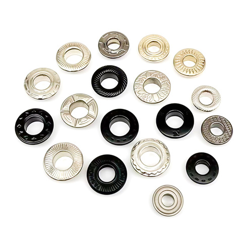 Varios estilos de ojales de metal de latón galvanizado y recubierto de color Accesorios de ropa para chaquetas y sombreros de plumón